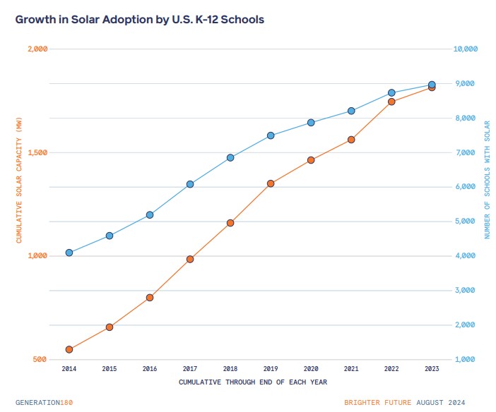According to the Brighter Future Report, solar power in the U.S. K-12 schools more than quadrupled between 2013 and 2023. Despite this impressive growth, only 10 percent of U.S. schools have adopted some form of solar energy.